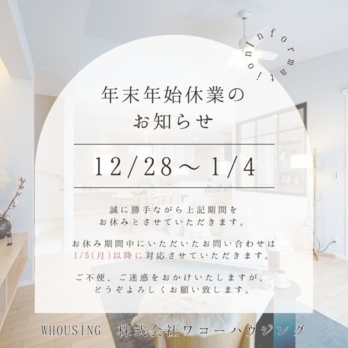 年末年始休業のお知らせ