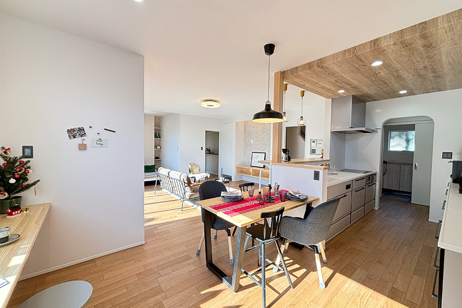玄関から最短距離でキッチンに行けちゃうキッチン直行型の“ラク家事動線”。 たくさんお買い物をしても靴を脱いだら1歩でキッチン・パントリーにつくのでとっても助かる。 家事動線が短くなるから家事がラクになる‼