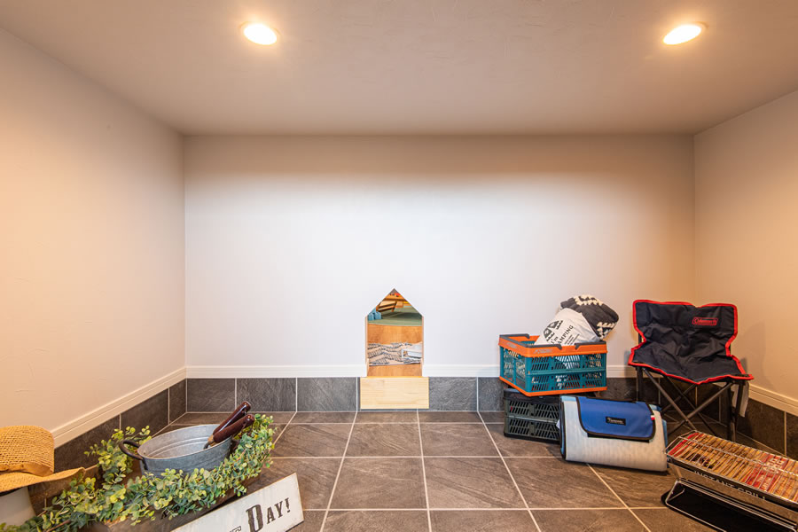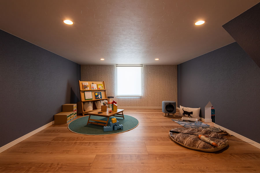 スキップフロアの下を活用した天井高を抑えた床下空間は、趣味&収納にぴったりの小部屋。 いつも家族のために頑張るパパやママにも、たまにはゆっくり一人の時間を!大好きなものに囲まれて、時間が経つのも忘れてしまいそうなほど、快適な空間。