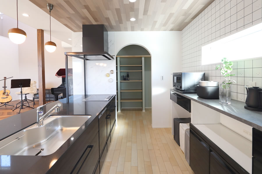 冷蔵庫は隣に設けた3帖のパントリーの中へ!キッチンがより広々とした印象に♪