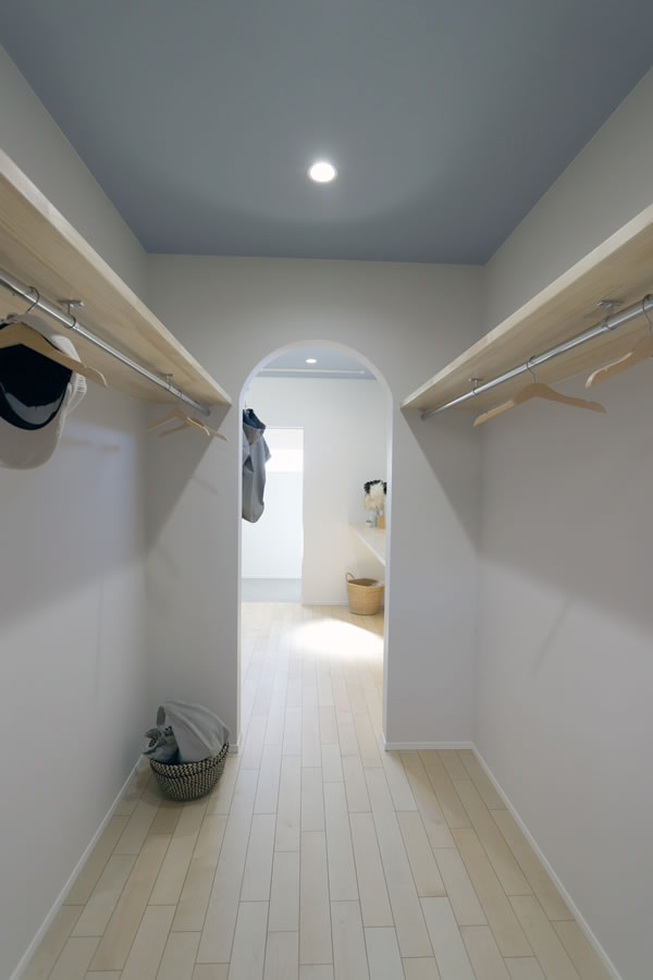 外からもリビングからも見えないので、干しっぱなしでも大丈夫。洗濯物が乾いたら、そのまま隣のWICへ収納できちゃいます。