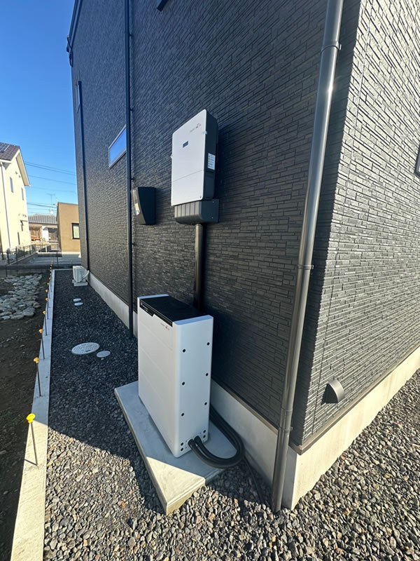 “建て得でんち”を活用し、太陽光発電システムと大容量蓄電池を設置。発電した電気を蓄電池に貯められるから夜間や万一の災害などの停電時にも電気が使えて安心な暮らしを実現。
